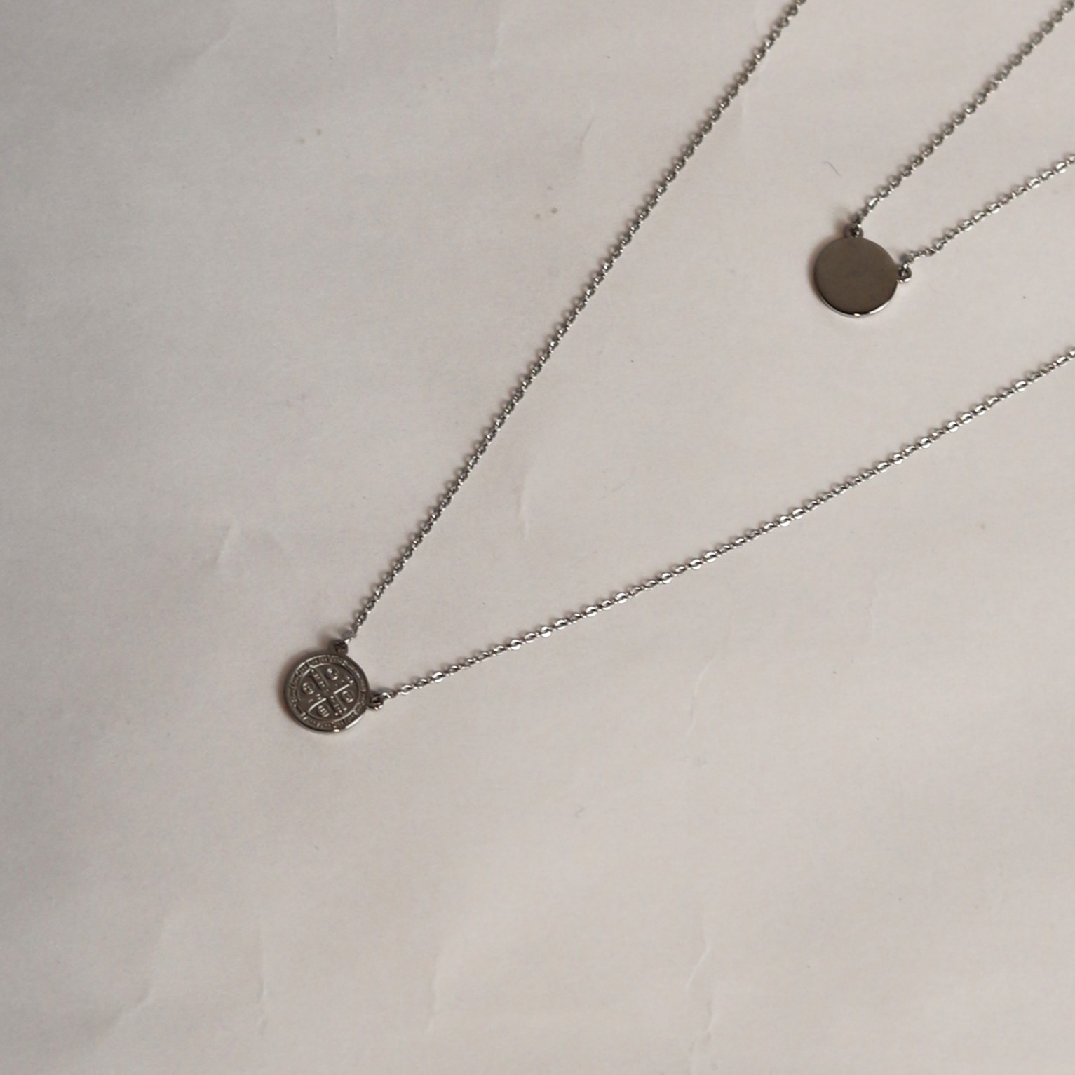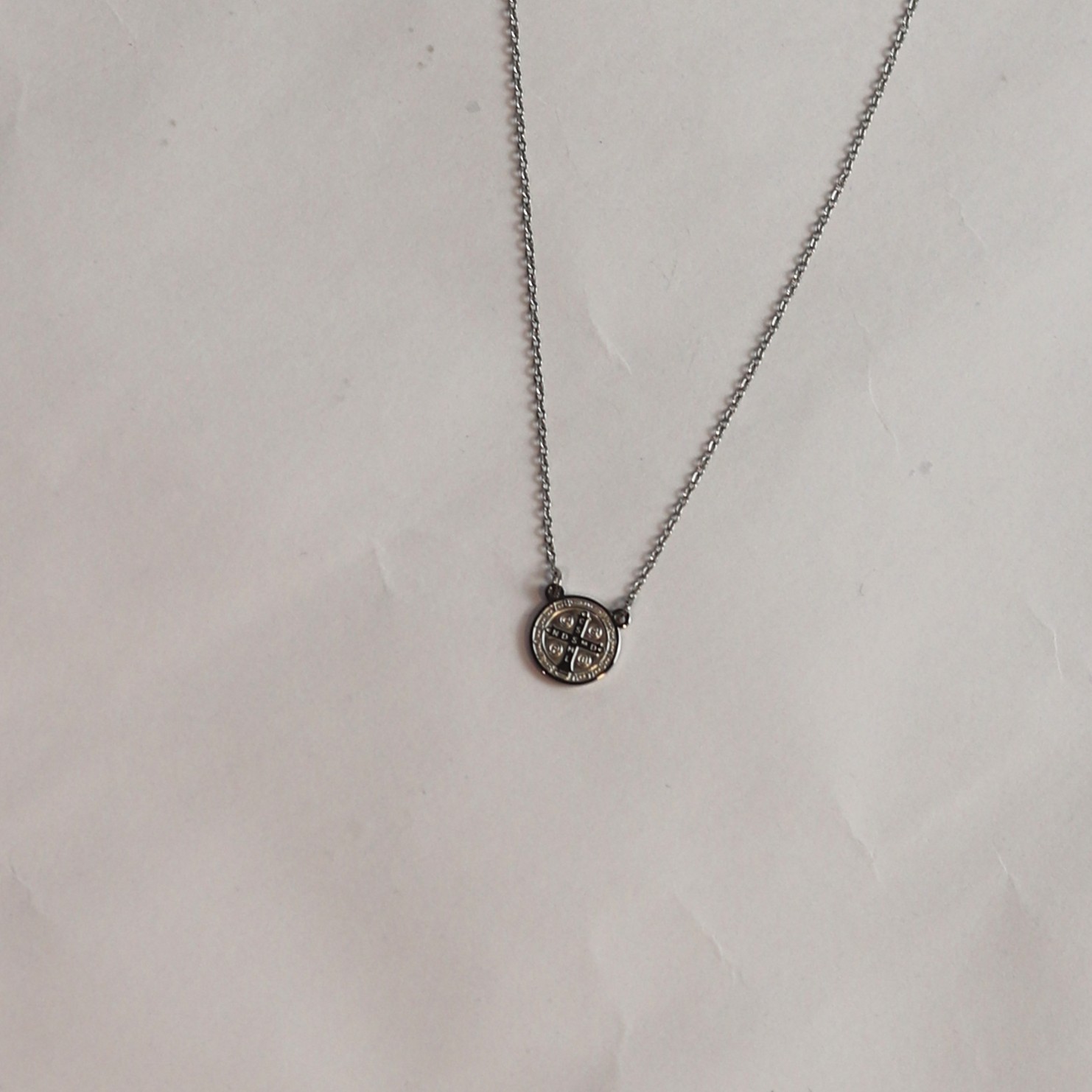 • Escapulário de aço na cor prata, com pingente de São Bento de 9mm;