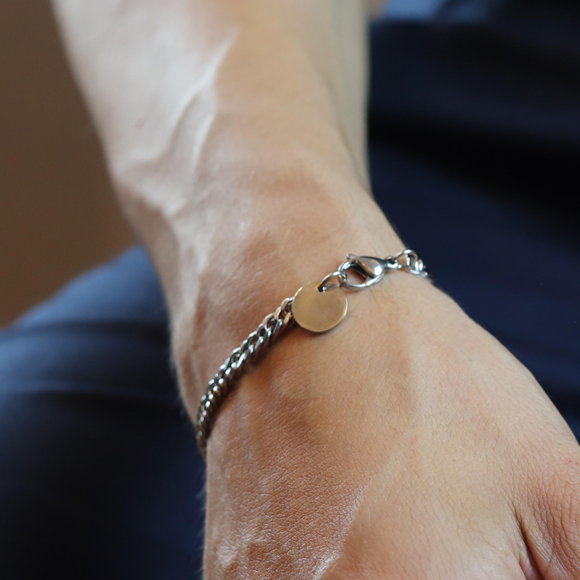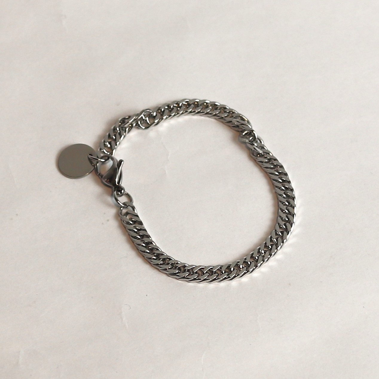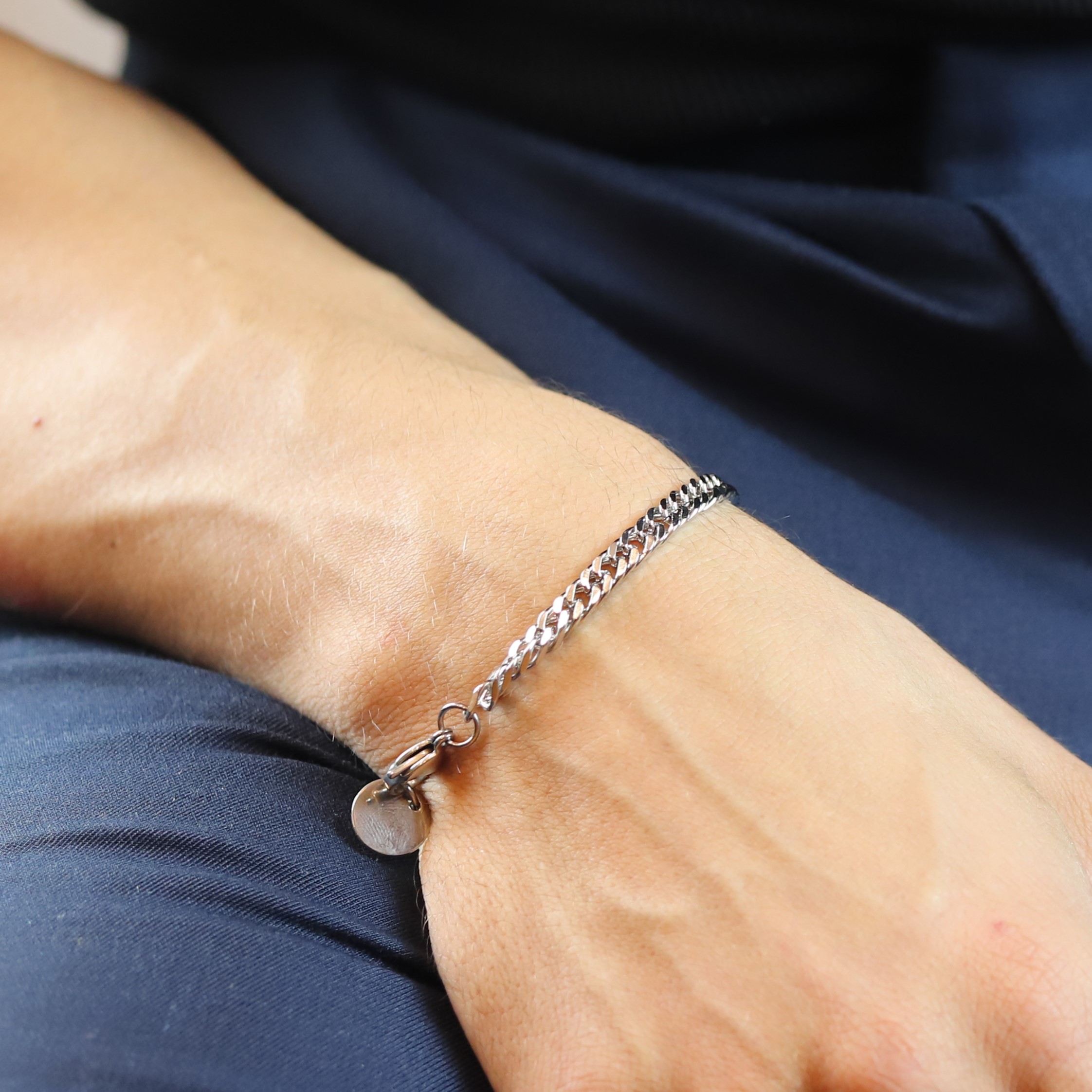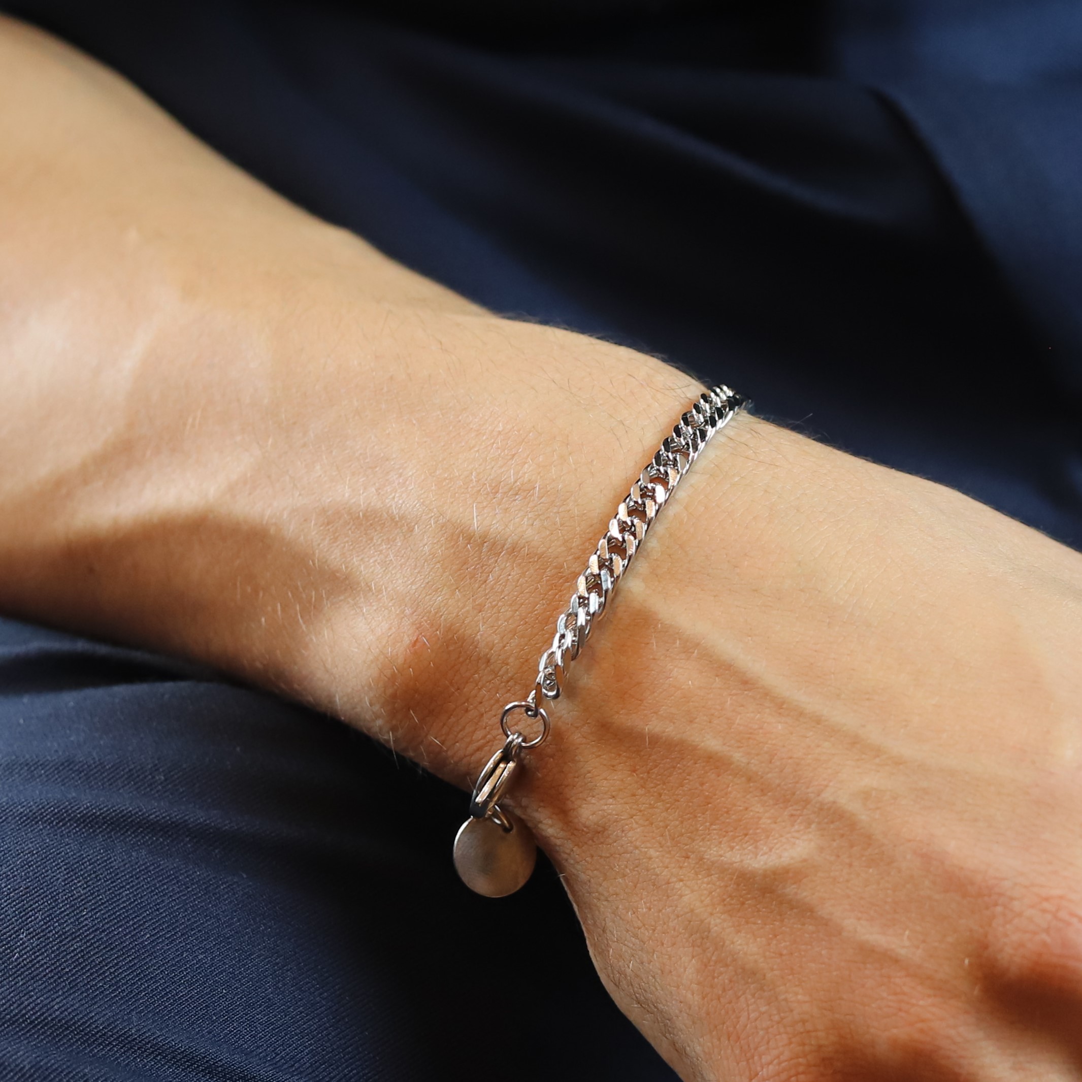 • Pulseira masculina de aço, prateada;
