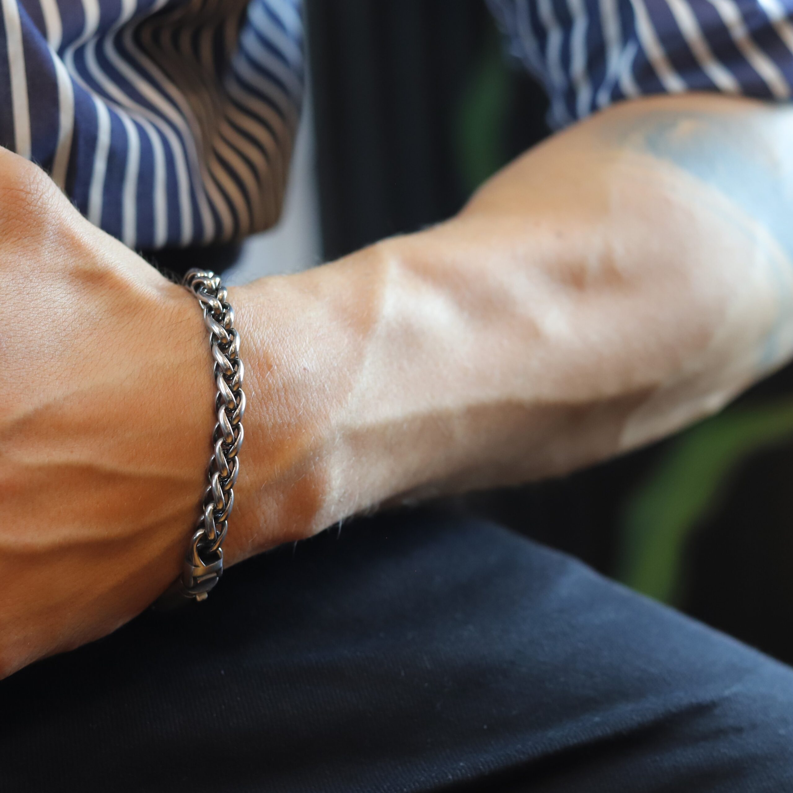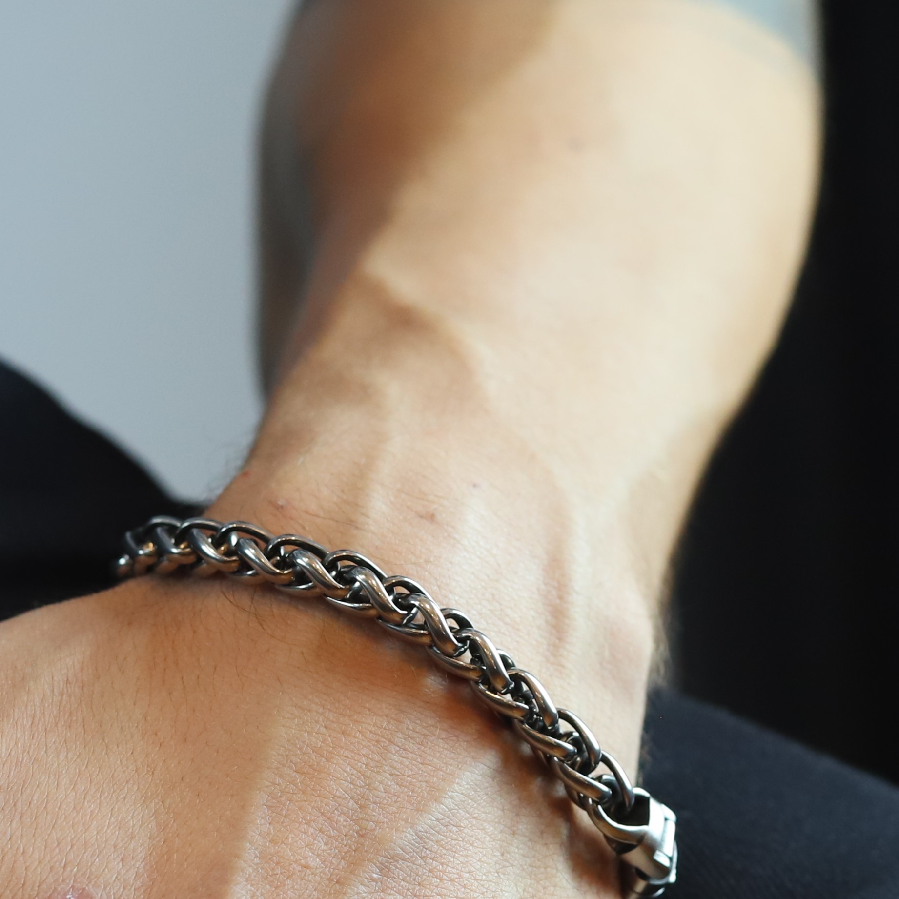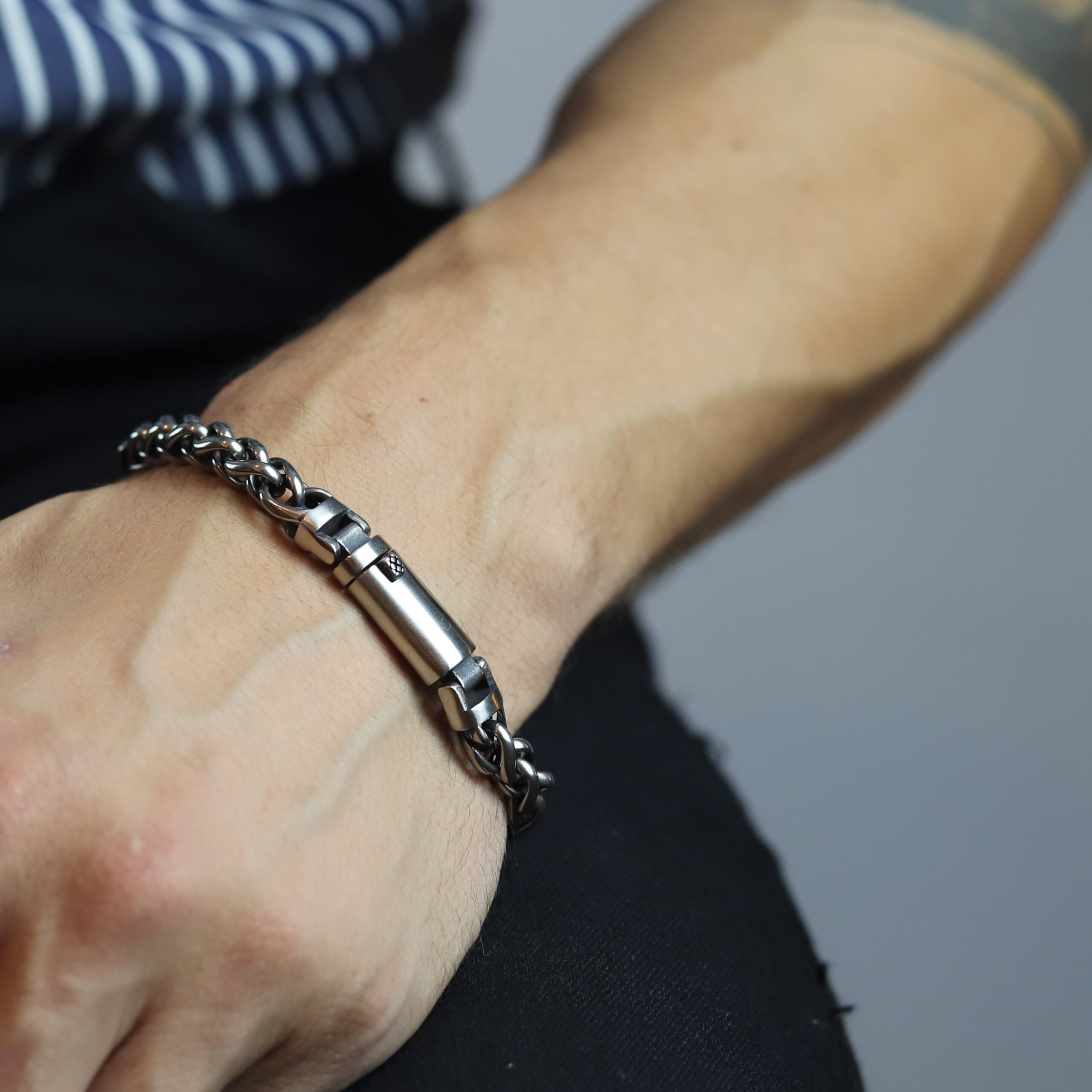 • Pulseira masculina de aço, na corta prate envelhecida;