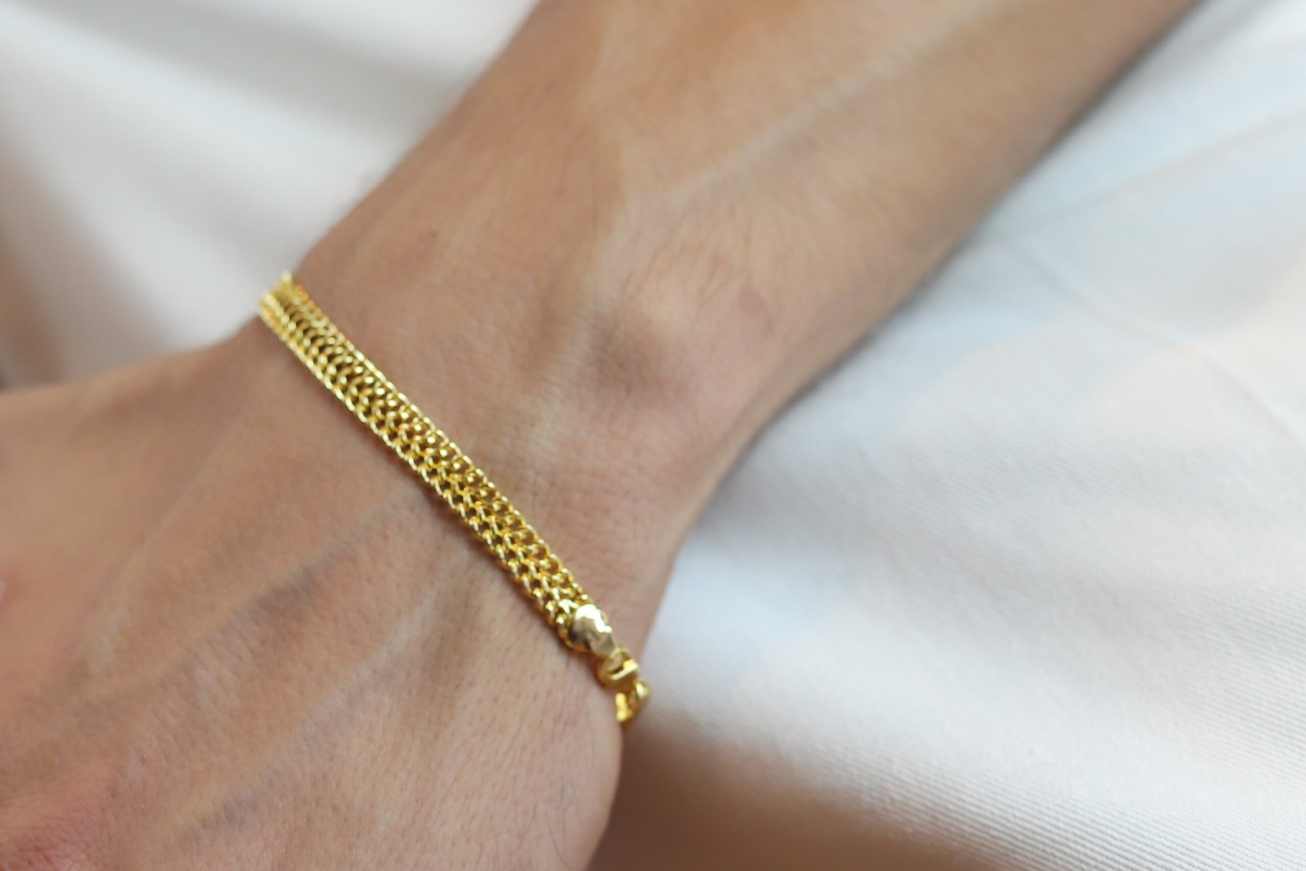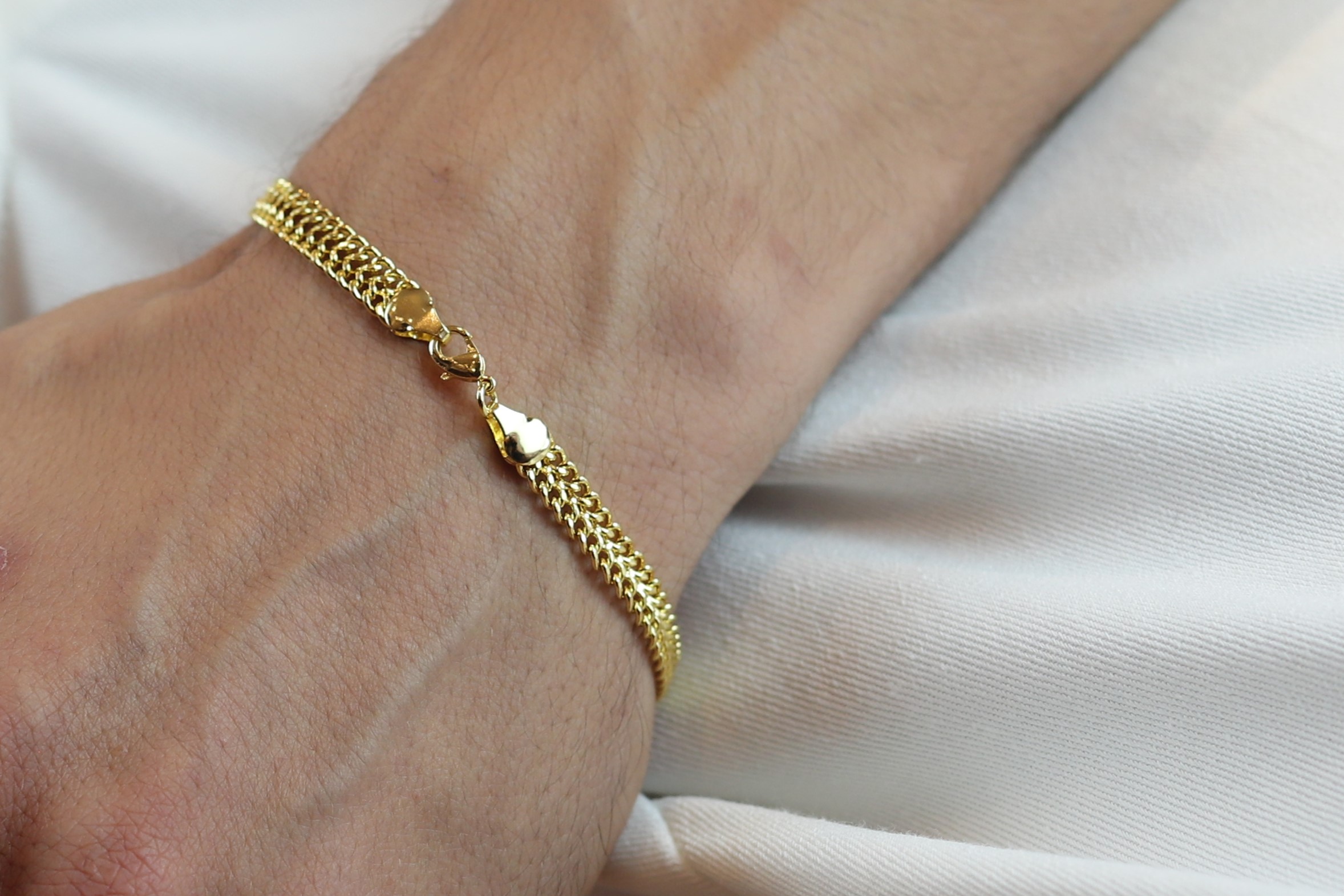 • Pulseira masculina de aço grume dupla, dourada;